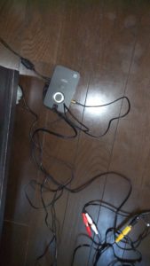 av入力が3極になっている。これがコンポジット端子に変換される。テレビの電波をアナログで出力するチューナを買えばテレビが見れるはずと考え、テレビのチューナ?アンテナ?を購入
