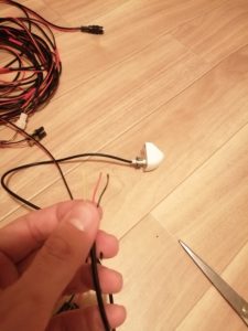 おまけ 4ピン端子下流の切断後 電気の線が細くなっているが、電圧は変わらず12vで流れているのを確認