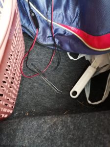 このままだとトランクにケーブルが挟まるので一工夫必要。ピンセットでケーブルをしたに引っ張るようにするとトランクが閉まるときにケーブルがはさまれない。