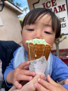 一歳がうんこしてたので、青空の下でおむつ交換。トイレ待ちはちょっと勿体ない