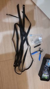 大体こんな感じ 計400円くらい。ハトメとポンチ、結束バンド持っている人は200円