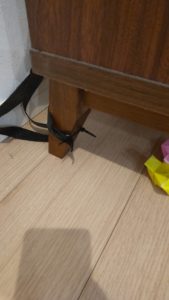 テレビ台の足元に結束バンドで固定